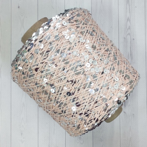 Пряжа Shine Paillettes 63125 серебро на персике