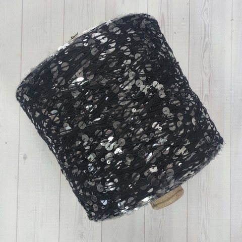 Пряжа Pailettes 3 мм 309 серебро на черном